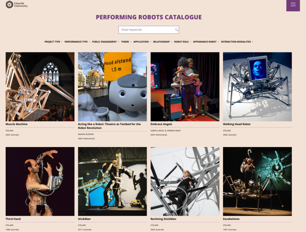 Recently, the online Performing Robots Catalogue was published. This catalogue is a living archive of projects, artworks, performances and experiments which combine theatre and robotics. It is part of the larger research project Dramaturgy for Devices.