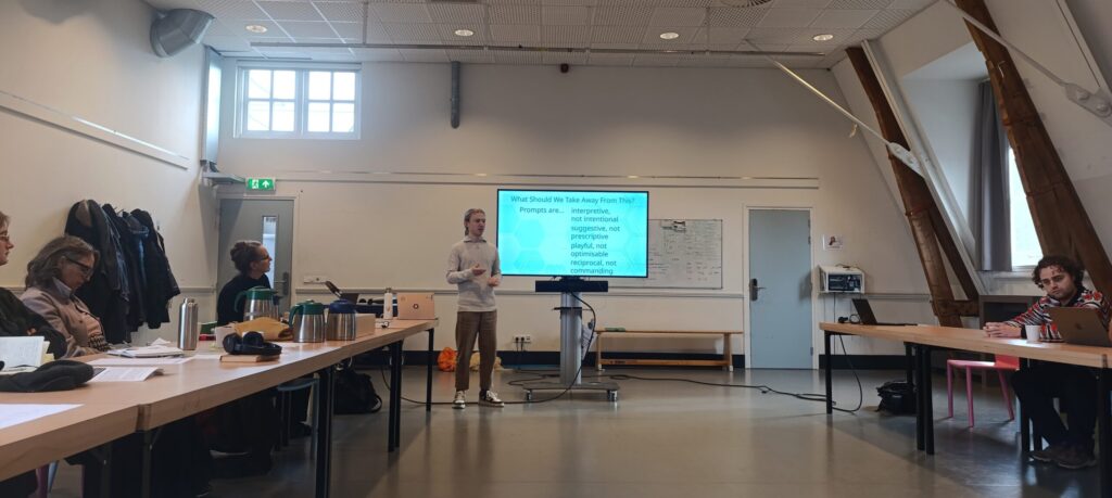 And so the day came to a productive close with many different perspectives having been shared. Core questions that recurred time and time again were those of where the agency of prompting lay, the role that its situational context played, and how we can maintain a balance between individual expressive freedom and an overarching structure. These are questions that Maaike and Jorrit will address in their continuing research, which will continue to integrate perspectives from a broad spectrum of disciplines.
